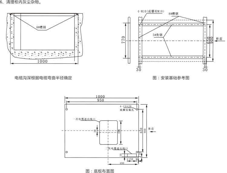 ◎ 將開關柜按順序放置于基礎上,調(diào)整好安裝的位置,然后用M12螺栓或者用點焊方法進行固定死,柜與柜間與M8螺栓并緊。