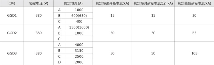 4. GGD3型27個方案和68個規(guī)格。主電路方案是征求廣大的設(shè)計使用部門的意見選編的,增加了發(fā)電廠的需要的方案,額定電流增加至3150A,適合2000kVA及以下的配電變壓器選用。此外,為適應(yīng)無功補償?shù)男枰O(shè)計了GGJ1、GGJ2電容補償柜、其主電路4個方案,共12個規(guī)格。