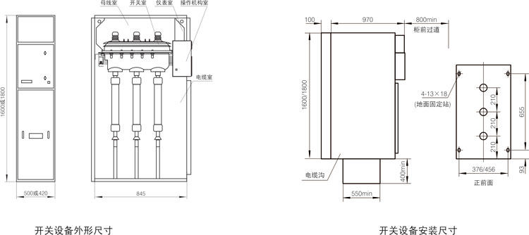 儀表室位于開關(guān)設(shè)備的上部,室內(nèi)可裝設(shè)電流表、電壓表、指示燈以及電動操作機構(gòu)等。