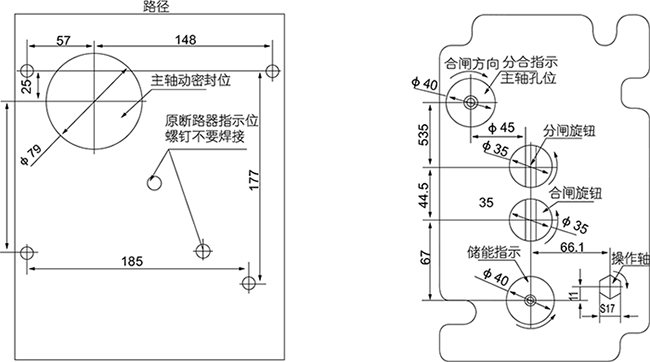五、彈簧操動機(jī)構(gòu)螺柱焊接安裝及面板開孔尺寸